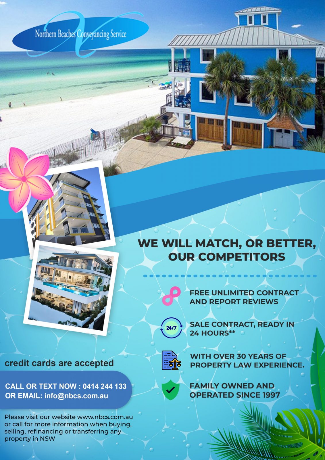 Offers Call Now Book Online How did you hear about us?*GoogleSocial Media (Facebook, Instagram, Etc.)Word Of Mouth/ReferralOther Submit 0414 244 133 info@nbcs.com.au NBCS ON facebook /NorthernBeachesConveyancingService NBCS ON Instagram @NorthernBeachesConveyancingService